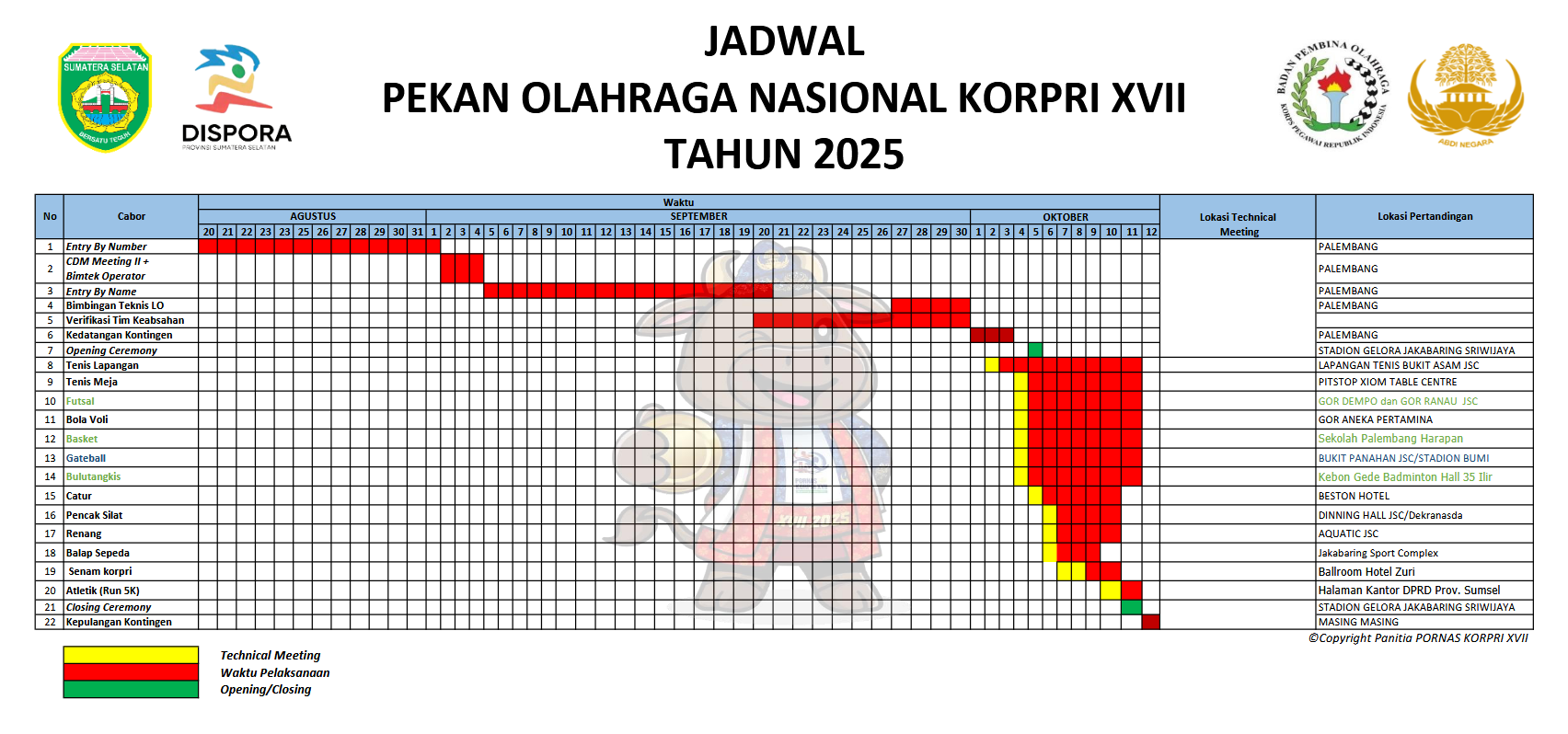 Rekap perolehan medali harianPornas Korpri XVII Sumatera SelatanTahun 2025